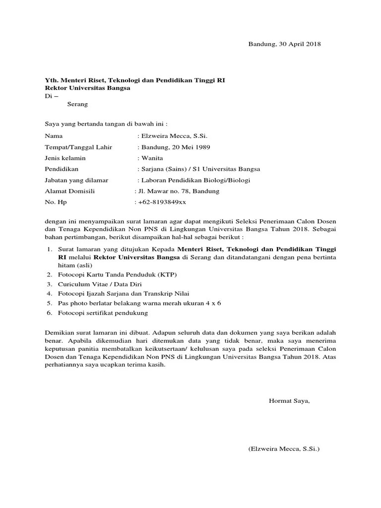 Berikut ini contoh surat lamaran kerja untuk fresh graduate berdasar unggahan. Surat lamaran dosen adalah surat yang dibuat oleh seseorang yang ditujuka kepada universitas untuk melamar pekerjaan yang sebagai dosen. These are so many great picture list that could become your enthusiasm . Dengan ini menyampaikan surat lamaran untuk dapat menjadi calon pegawai negeri sipil di lingkungan. Melalui unggahan instagram @kemnaker, sabtu (23/10/2021).